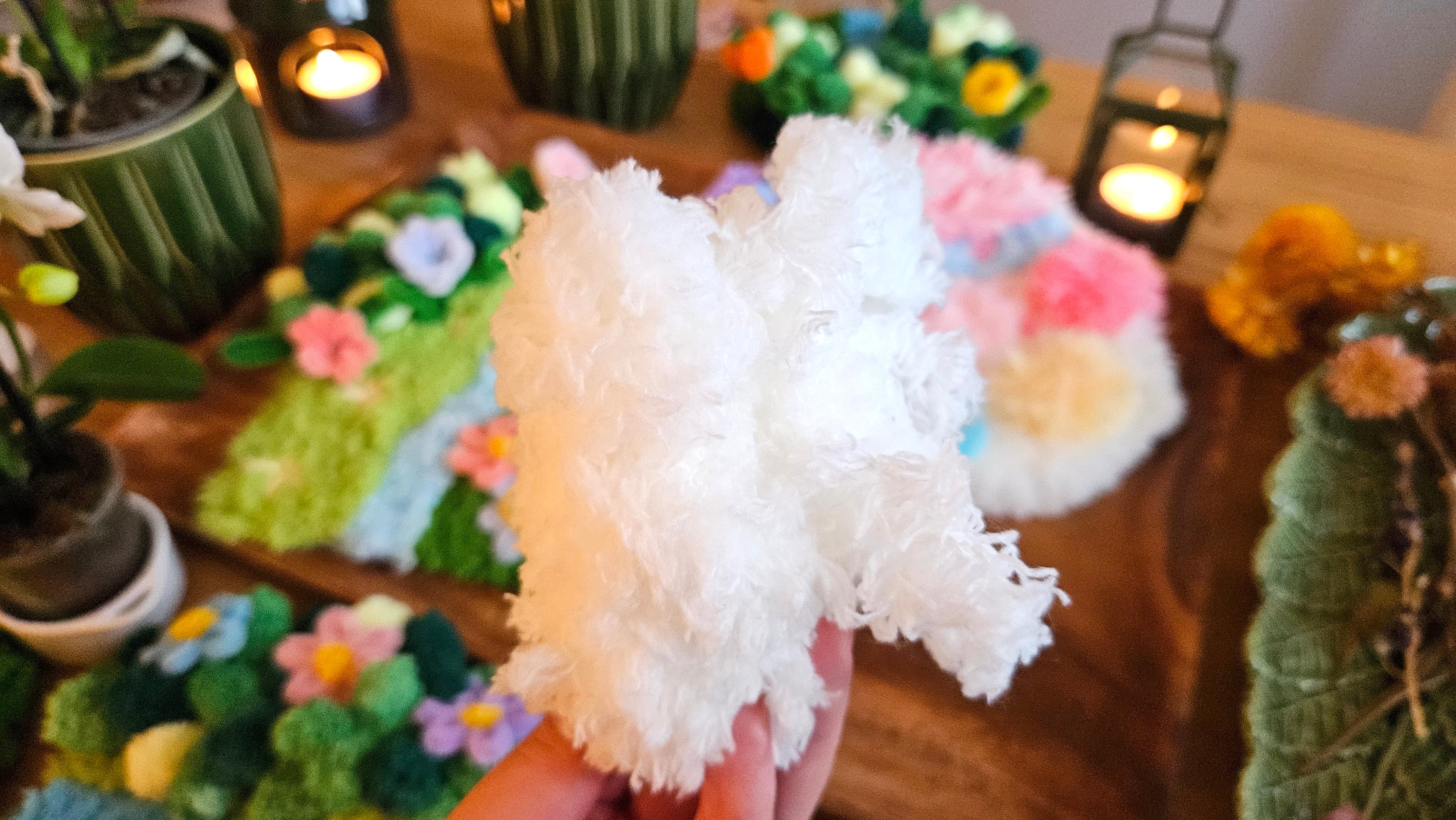 White eyelash yarn